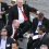 Toronto Mayor Rob Ford hoists the Grey Cup on stage with Toronto Argonauts players while celebrating the team's Grey Cup victory in downtown Toronto on Tuesday, Nov.27, 2012.