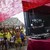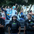 A pickup truck with Argentine football fans drive past riot police trying to control the fans and keep them from impeding vehicle traffic as they show their enthusiasm for their team playing in the FIFA World Cup on June 14, 2014 in Rio de Janeiro, Brazil. The Argentine team plays their first match tomorrow against Bosnia and Herzegovina. (Photo by Joe Raedle/Getty Images)
