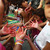 Young residents gather red paint on their hands, symoblizing the blood of Mare residents killed, where protestors painted a street with the phrase 'Cup for Whom?' in the Mare community, or 'favela', on June 14, 2014 in Sao Paulo, Brazil. The favela is currently occupied by the Brazilian Army. A recent Pew Research poll stated 61 percent of Brazilians believe hosting the World Cup is negative for Brazil. Anti-World Cup protestors feel the Cup will take away money away from health care, education and other public services. (Photo by Mario Tama/Getty Images)