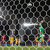 The shadows of Chile soccer fans are cast on a fence outside the Arena Pantanal as they arrive to their team's World Cup match with Australia in Cuiaba, Brazil, Friday, June 13, 2014. (AP Photo/Felipe Dana)