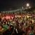 German and other soccer fans create a conga line while waiting for the start of the German vs. Portugal match as they watch on a giant screen at the FIFA World Cup Fan Fest on Copacabana beach on June 16, 2014 in Rio de Janeiro, Brazil. The teams are playing on the fifth day of the World Cup tournament. (Photo by Joe Raedle/Getty Images)