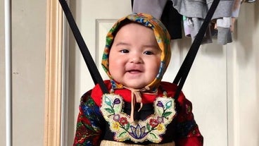 All this 6-month-old needs is her baby jumper and she's ready to go!